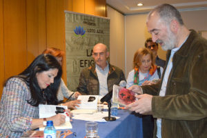 La autora afirmo sentirse “abrumada” ante el numeroso público que acudió a acompañarla en la presentación de su obra. «La efigie rosa» reúne en sus páginas una trama llena de aventuras y de personajes únicos y muy bien construidos.